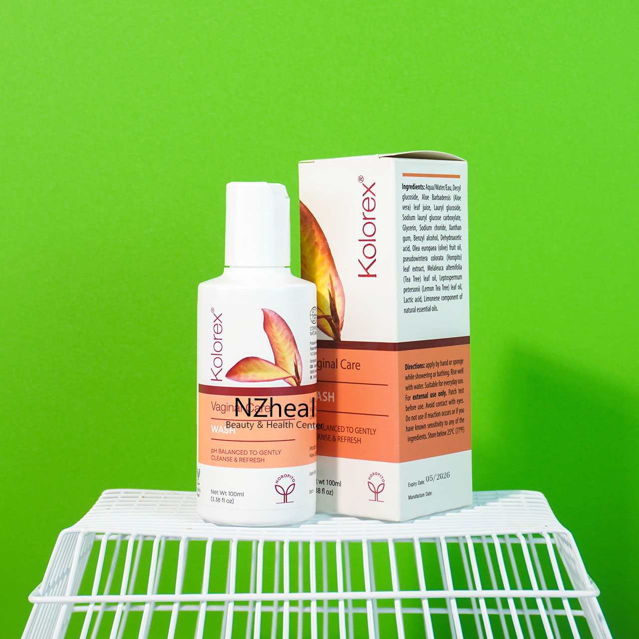Gel vệ sinh Kolorex Wash chứa các thành phần tự nhiên như chiết xuất lô hội Aloe Vera, chiết xuất lá Pseudowintera colorata (Horopito), dầu cây chè Melaleuca alternifolia (Tea Tree), tinh dầu cây chè chanh Leptospermum petersonii, dầu ôliu Olea europaea, và nhiều thành phần khác.