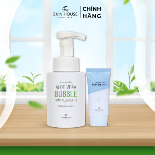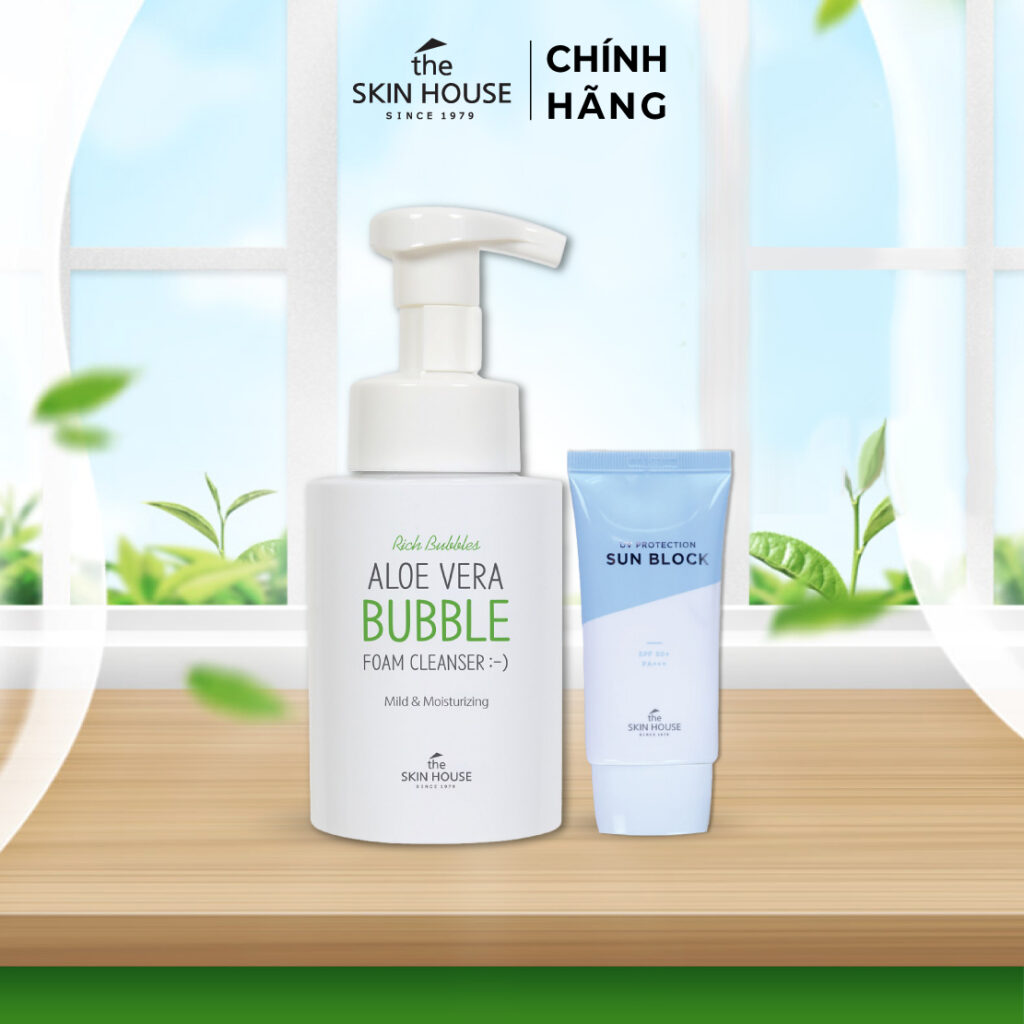 Làn da dầu mụn, nhạy cảm đừng lo lắng nữa! Đã có sữa rửa mặt lô hội The Skin House Aloe Vera Bubble Foam Cleanser. Chiết xuất lô hội dịu nhẹ làm sạch sâu, giảm mụn, se khít lỗ chân lông mà không hề gây khô da. Bọt siêu mịn màng như mây, cho bạn cảm giác thư giãn, sảng khoái mỗi khi sử dụng. Rinh ngay “em nó” về để sở hữu làn da sạch khỏe, căng mọng chuẩn Hàn nhé!