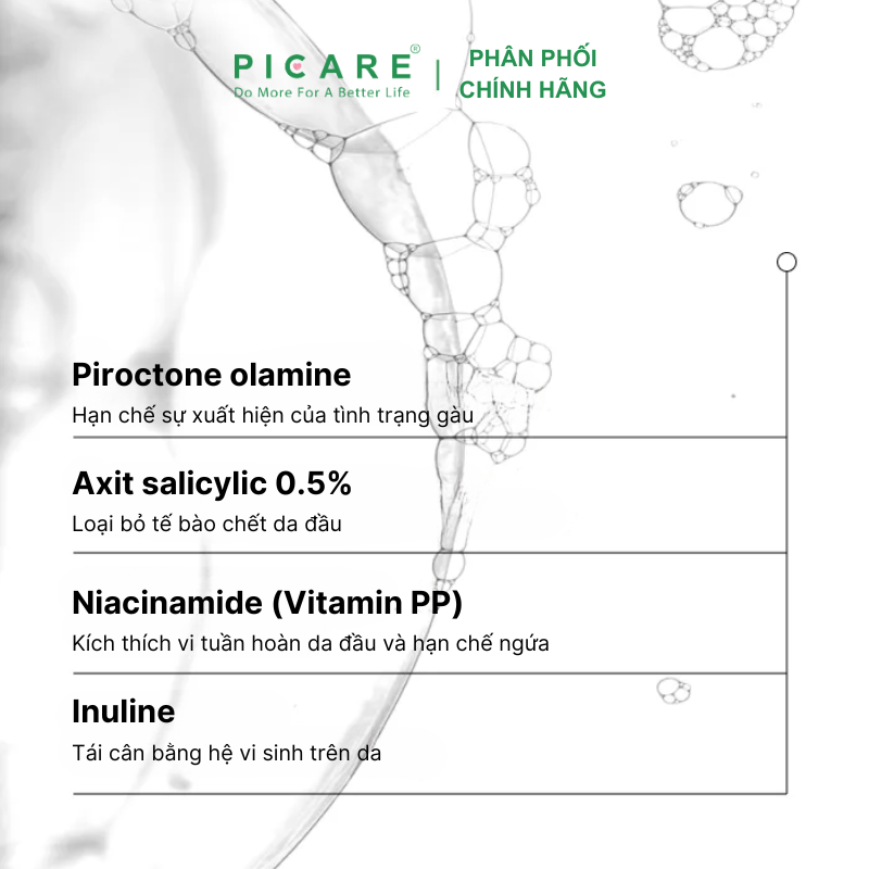 – Phức hợp kháng nấm có chứa pyrithione, kẽm và piroc âm olamine hạn chế sự tăng sinh của nấm men Malassezia – tác nhân chính gây ra gàu.