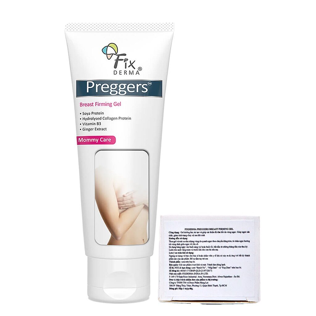 Gel săn chắc da ngực Fixderma Preggers Breast Firming Gel gel dưỡng ẩm, tái tạo và giúp cải thiện độ đàn hồi da vùng ngực. Giúp ngực săn chắc, giảm tình trạng chảy xệ sau khi sinh. Thành phần: Chiết xuất tinh chất nha đam (2%), chiết xuất nghệ (1.5%), Propanediol (2.15%), Niacinamide (1.15%), Hydrolyzed Collagen. Công dụng: Gel dưỡng ẩm, tái tạo và cải thiện độ đàn hồi da vùng ngực. Giúp ngực săn chắc, giảm tình trạng chảy xệ sau khi sinh. Hướng dẫn sử dụng: Thoa gel và mát xa nhẹ nhàng vùng da quanh ngực theo chuyển động tròn, từ chân ngực hướng tới vùng rãnh giữa ngực rồi lên cổ. Sử dụng hàng ngày vào buổi sáng và/ hoặc buổi tối, bắt đầu từ những tháng đầu của thai kỳ. Lưu ý đặc biệt: Luôn rửa sạch vùng núm vú trước khi cho con bú sữa mẹ. Chỉ định: Dùng cho vùng ngực.