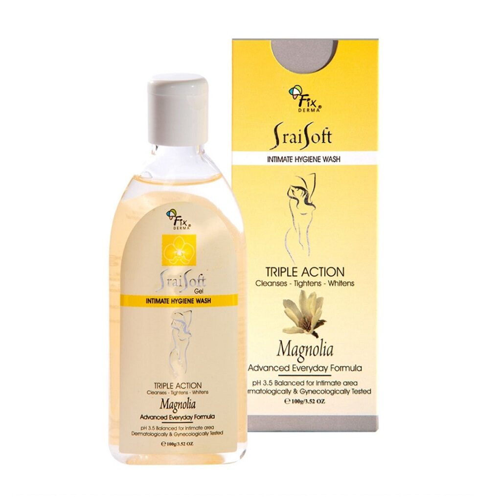 Gel Vệ Sinh Phụ Nữ Fixderma Srai Soft Gel Gel vệ sinh vùng kín phụ nữ, giúp làm sạch, khử mùi hôi, cân bằng độ ẩm, làm trắng và se khít vùng kín. Chất tanin của chiết xuất hạt cau làm săn se, trắng vùng kín. Có tính kháng khuẩn và vi nấm. Thành phần: Chiết xuất lá nha đam (2%), tinh dầu tràm trà, chiết xuất quả cau, chiết xuất khế, bột lá sầu đâu, cam thảo, Capryloyl Glycine, Lactic Acid. Công dụng: Làm sạch, khử mùi hôi, cân bằng độ ẩm, làm trắng và se khít vùng kín. Hướng dẫn sử dụng: Làm ướt vùng kín, cho một lượng nhỏ gel vào lòng bàn tay. Thoa rửa kỹ vùng kín, rửa sạch lại bằng nước, lau khô. Liều dùng: 1-2 lần/ngày hoặc theo nhu cầu. Sử dụng ở vùng kín của phụ nữ. Lưu ý đặc biệt: Sản phẩm này chỉ để dùng rửa ngoài, không thụt rửa âm đạo, không được uống. Chỉ định: Tất cả mọi loại da. Dùng vệ sinh vùng kín của phụ nữ