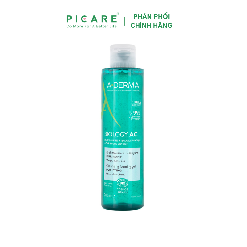 Gel rửa mặt dịu nhẹ dành cho da nhờn mụn giúp thanh lọc, làm sạch sâu mà không gây khô da, đồng thời làm se khít lỗ chân lông giúp làn da trở nên mịn màng, tươi mát và dễ chịu. Sản phẩm với 99% thành phần có nguồn gốc tự nhiên, an toàn và lành tính cho thanh thiếu niên từ 9 tuổi và người lớn. – Picare là nhà phân phối chính hãng của A-DERMA tại Việt Nam.