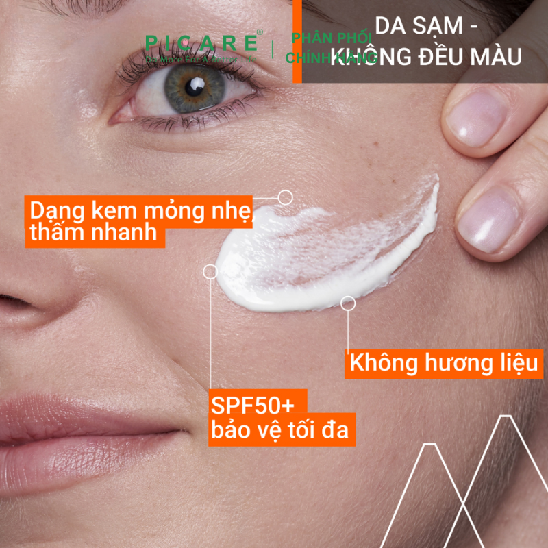 • Phức hợp màng lọc tia UVA/UVB SPF50 Tinosorb M: Giảm đốm nâu do tia UV gây ra và ngăn ngừa xuất hiện trở lại.