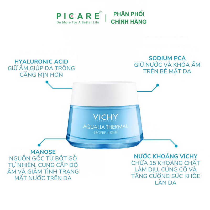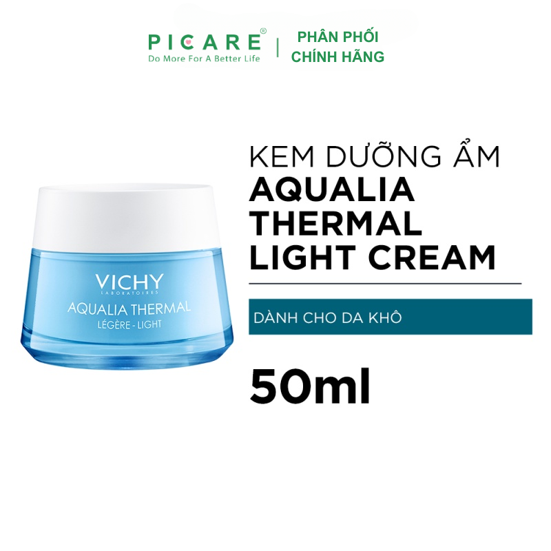 Kem Dưỡng Ẩm Và Cung Cấp Nước Cho Da Giúp Căng Mịn, Ẩm Ướt Vichy Aqualia Thermal Rehydrating Cream-Light 50ml sở hữu thế hệ dưỡng ẩm mới với cơ chế Isotonic bù nước, bù khoáng cùng 97% thành phần thiên nhiên (Khoáng núi lửa Vichy, Solium PCA, Đường Mannose, HA) giúp cấp nước sâu cho làn da ẩm mượt suốt 48h bất chấp mọi điều kiện thời tiết. Công thức mới với thành phần tự nhiên hơn, hiệu quả hơn và an toàn hơn cho làn da nhạy cảm.– Picare là nhà phân phối chính hãng của VICHY tại Việt Nam.