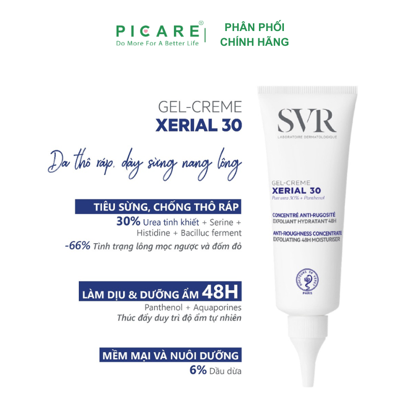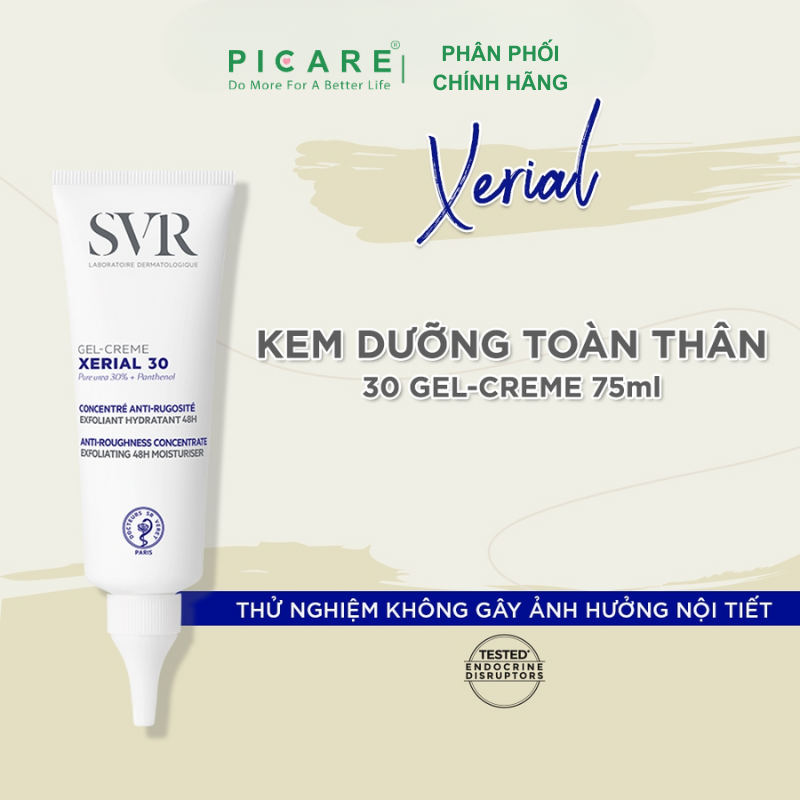 – SVR XERIAL 30 Gel-Creme, một công thức cực đậm đặc với các hoạt chất làm mềm da và tiêu sừng để chống lại sự thô ráp và làm mềm da.