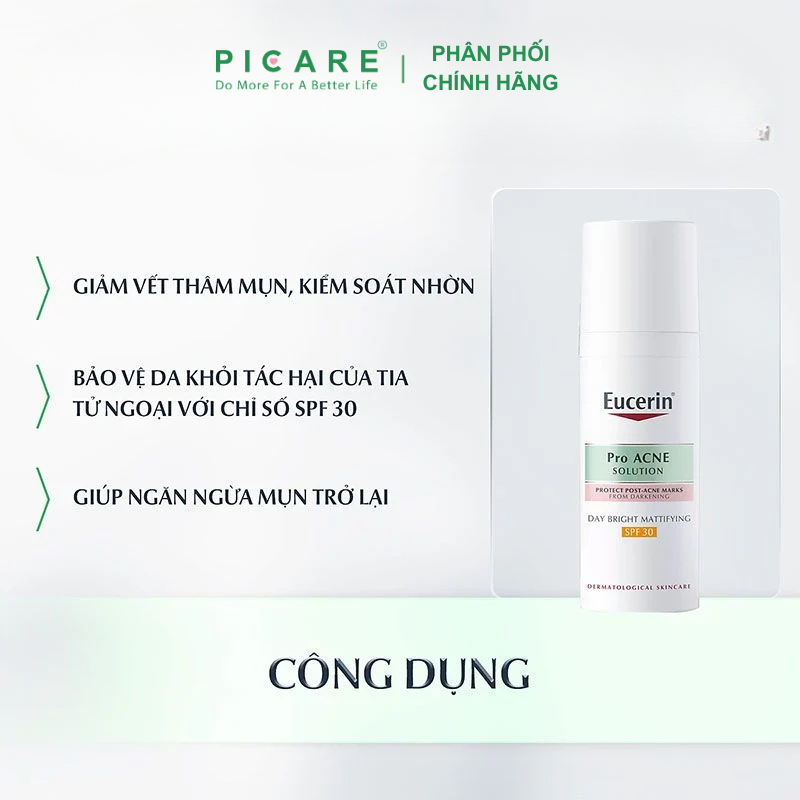 Kem dưỡng cho da thâm mụn EUCERIN ACNE-OIL CONTROL PRO ACNE SOLUTION DAY BRIGHT MATTIFYING SPF 30 50ml