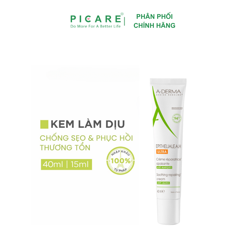 Kem Dưỡng A-Derma Epitheliale A.H Ultra Soothing Repairing Cream là kem dưỡng với công thức chứa 98% thành phần từ thiên nhiên, sản phẩm là giải pháp cho làn da nhạy cảm, bị tổn thương do tác động từ môi trường hoặc trải qua quá trình laser, lăn kim. Sản phẩm an toàn cho cả gia đình giúp ngăn ngừa sẹo, làm dịu và phục hồi làn da bị tổn thương hiệu quả thuộc thương hiệu A-Derma đến từ Pháp. – Picare là nhà phân phối chính hãng của A-Derma tại Việt Nam.