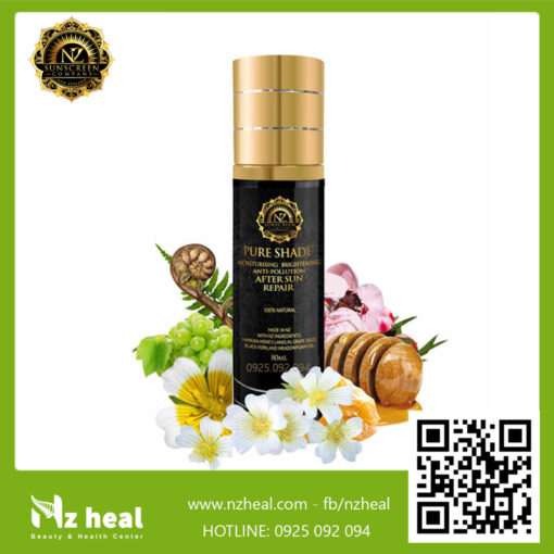 Được thiết kế để sử dụng cùng nhau, kem chống nắng, làm sáng da Pure Shade SPF 50+ Moisturising & Sunscreen và kem dưỡng trắng da, hỗ trợ trị sạm nám sau khi chống nắng Pure Shade Anti-pollution Brightening After Sun Repair có tác dụng cung cấp khả năng chống nắng và trẻ hóa tối ưu, giúp đơn giản hóa chế độ chăm sóc da hàng ngày của bạn. Được sản xuất tại New Zealand, Pure Shade sử dụng tất cả các thành phần hữu cơ, tự nhiên bao gồm Mật ong Manuka, Lanolin, Hạt nho, Dương xỉ đen, Dầu hạt cỏ, chiết xuất Pohutakawa, Dầu ô liu, Vitamin B5, Dầu hạt Rasberry, Kiwi, Clair Blanche và Jojoba Esters.