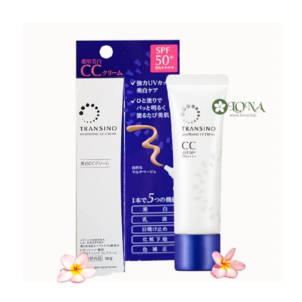 - Kem trang điểm dưỡng trắng Transino Whitening CC Cream 30g là một sản phẩm make up mới của hãng Transino. CC Cream Transino giúp che khuyết điểm tốt, tạo lớp nền hoàn hảo cho da, đồng thời chứa thành phần giúp dưỡng trắng da, mờ nám và tàn nhang.