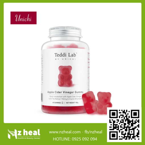 Unichi Apple Cider Vinegar Gummy kết hợp hương vị tuyệt vời cùng với lợi ích cho sức khỏe, giúp bạn dễ dàng tận hưởng những đặc tính tốt từ giấm táo một cách ngon miệng. Đặc biệt được chế biến để hỗ trợ quá trình giảm cân, những viên kẹo dẻo này đem lại sự tiện lợi và ngon miệng để bổ sung giấm táo vào chế độ ăn hàng ngày. Kẹo dẻo Unichi Apple Cider Vinegar Gummy được tạo ra từ giấm táo hữu cơ chất lượng nhất, kết hợp với thành phần đặc biệt như con giấm (The Mother), giúp tăng cường lợi ích cho sức khỏe và hỗ trợ tổng thể sức khỏe của bạn.