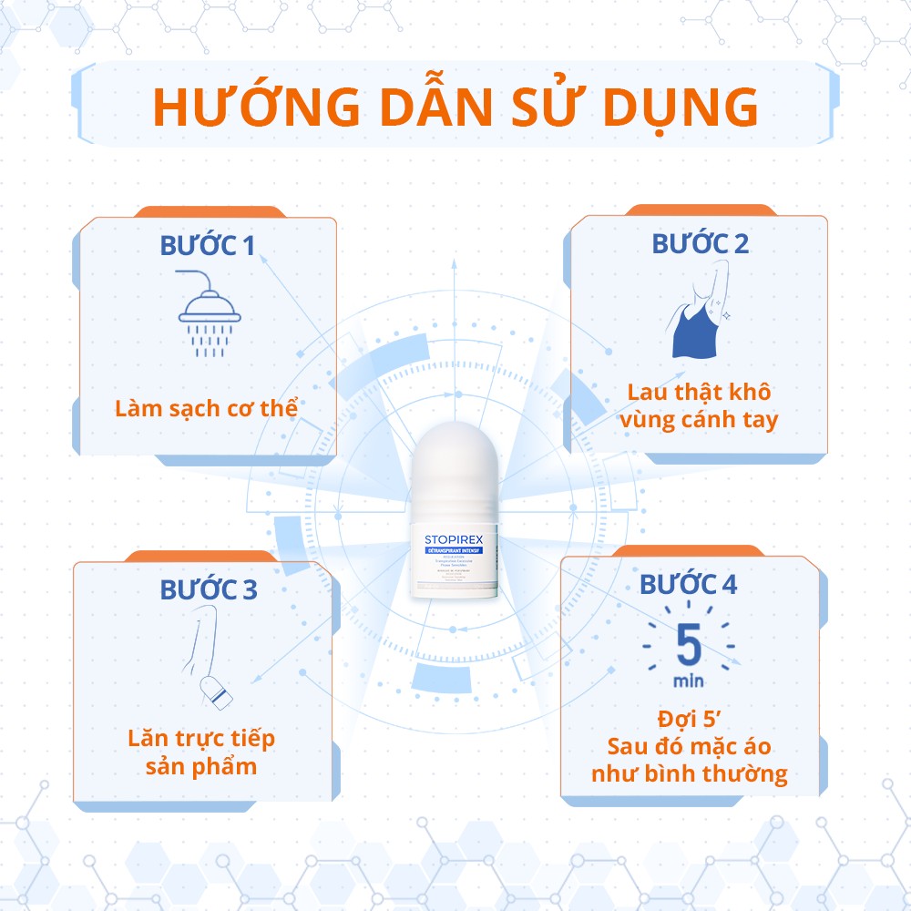 - Dễ sử dụng: Stopirex có thiết kế dạng lăn, tiện lợi và dễ dàng sử dụng. Bạn chỉ cần lăn sản phẩm trực tiếp lên vùng da nách sau khi tắm rửa và đợi sản phẩm khô ráo trước khi mặc quần áo.