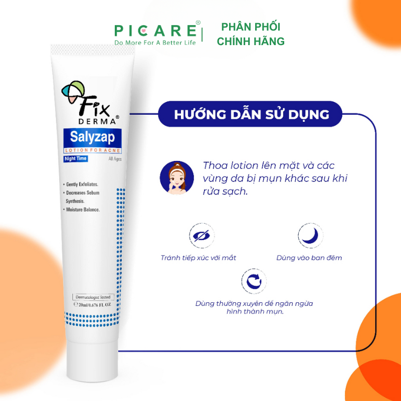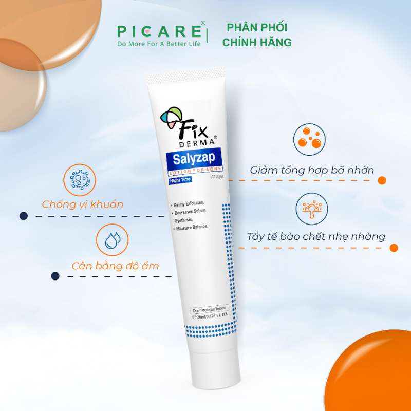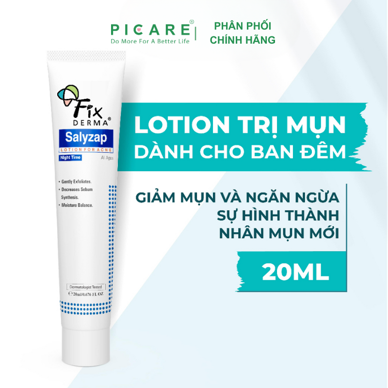 Lotion giúp giảm mụn và ngăn ngừa sự hình thành nhân mụn mới. Làm sạch bụi bẩn, bã nhờn, tế bào chết và làm thông thoáng lỗ chân lông. Dưỡng ẩm và làm dịu da. – Picare là nhà phân phối chính hãng của FIXDERMA tại Việt Nam.