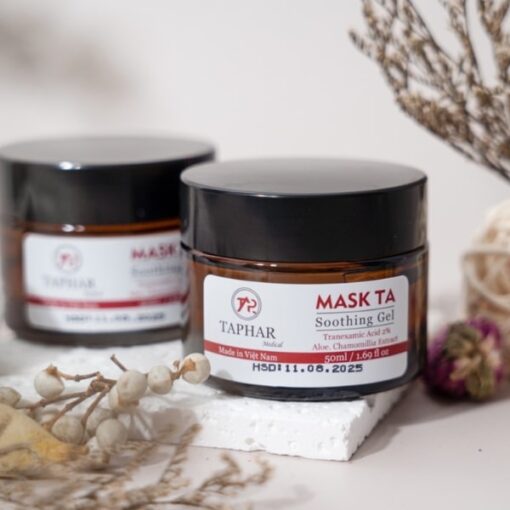 Mask TA Soothing Gel là dòng mặt nạ cao cấp hỗ trợ điều trị tình trạng rám má, cải thiện sắc tố trên da giúp da đều màu hơn. Đồng thời, với bảng thành phần lành tính, chiết xuất từ thiên nhiên với khả năng làm dịu da, sản phẩm còn hỗ trợ giảm đỏ, phục hồi da sau khi thực hiện liệu trình xâm lấn hiệu quả.