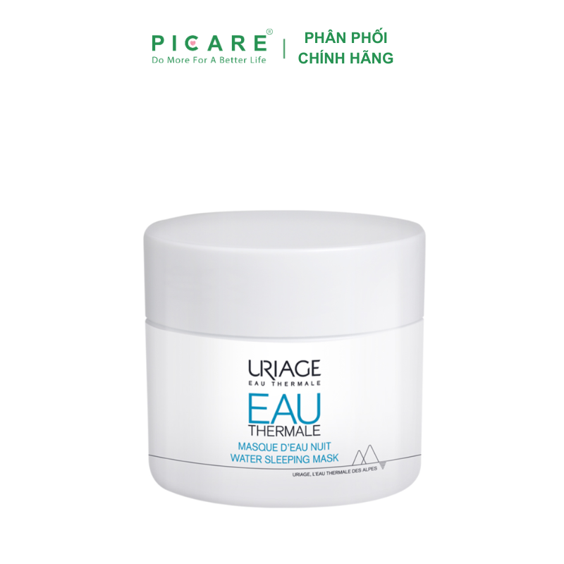 Mặt Nạ Ngủ Dưỡng Ẩm Khoáng Chuyên Sâu URIAGE EAU THERMALE MASQUE D’EAU NUIT 50ml, với công thức cấp nước và cấp giữ ẩm chuyên sâu kết hợp với sức mạnh cấp ẩm dồi dào từ các khoáng chất của nước khoáng Uriage và kết cấu dạng thạch nước độc đáo, mang đến trải nghiệm như làn da đang đắm trong làn sương tươi mát và mỏng nhẹ như mây trong suốt 8h ngon giấc, và bạn sẽ cảm nhận rõ rệt làn da được dưỡng ẩm đầy đủ, căng mướt, mềm mịn, tươi sáng và tràn đầy sức sống vào sáng hôm sau, 89% người dùng thấy da tươi sáng lên, 95% người thấy không gây bết dính, và 58% người dùng thấy da được cấp ẩm sâu sau 8h*– Picare là nhà phân phối chính hãng của Uriage tại Việt Nam.