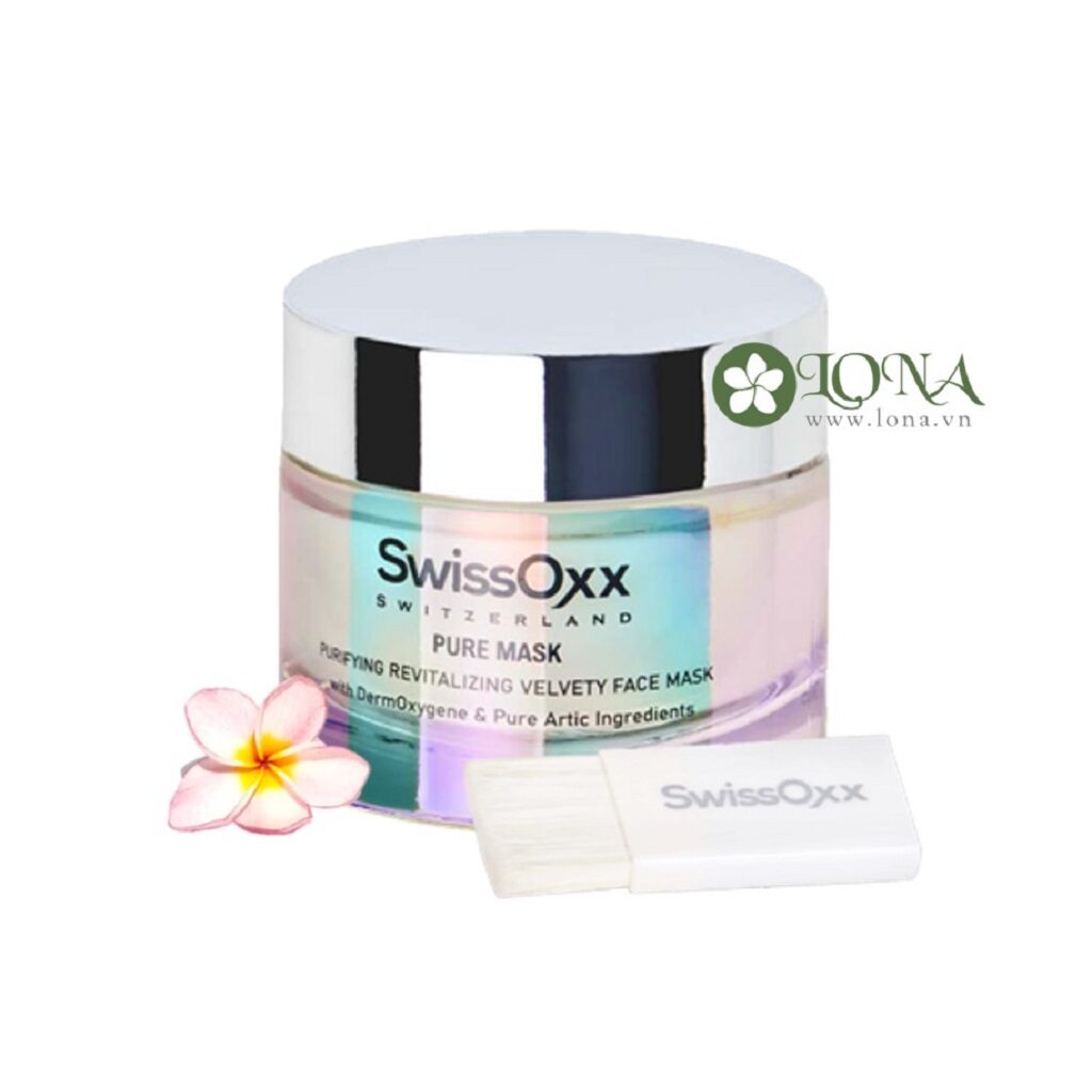 Mặt nạ dưỡng ẩm và tái tạo Pure Mask SwissOxx rất giàu các thành phần hoạt tính. Với kết cấu siêu mềm, dạng kem. Pure Mask hydrat hóa, cung cấp oxy, làm mịn và săn chắc da để lộ ra một làn da rạng rỡ.