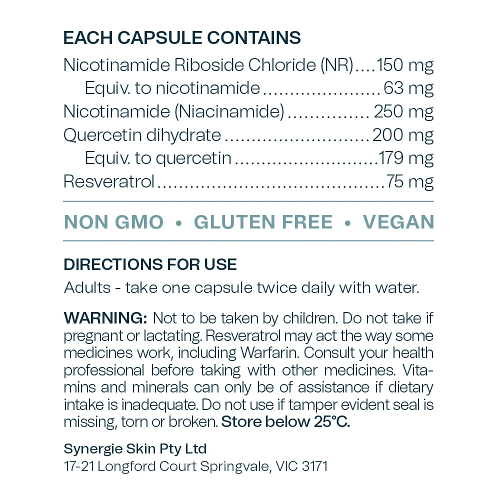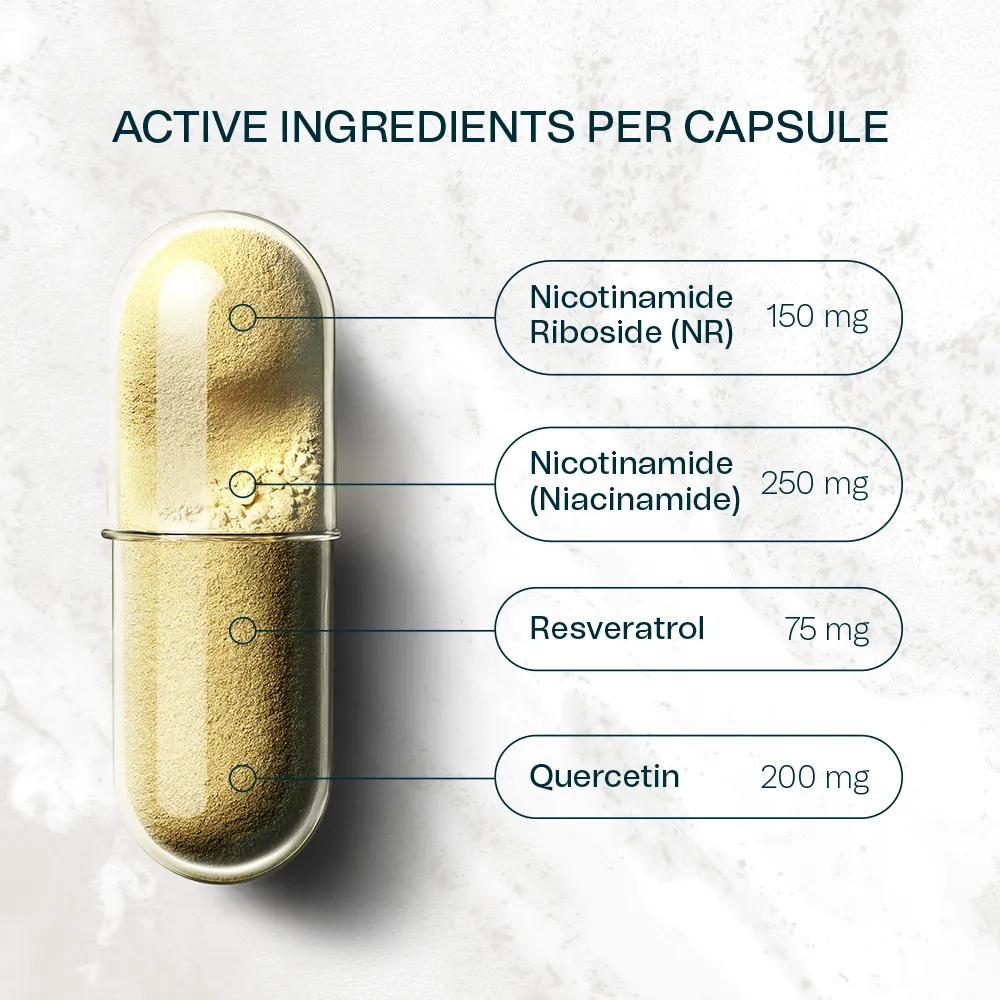 NRgize+ được phát triển dựa trên nguyên tắc khoa học về tầm quan trọng của NAD+ trong mọi tế bào. Sự kết hợp giữa NR và niacinamide cho phép bổ sung tiền chất NAD+ theo hai đường chuyển hóa khác nhau, đồng thời các chất chống oxy hóa giúp giảm tổn thương gốc tự do — tập trung vào cải thiện năng lượng tế bào và bảo vệ cấu trúc tế bào lâu dài.