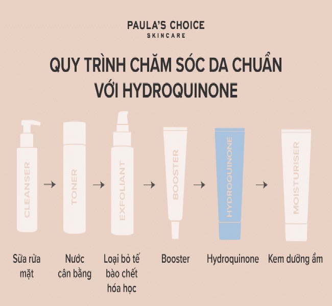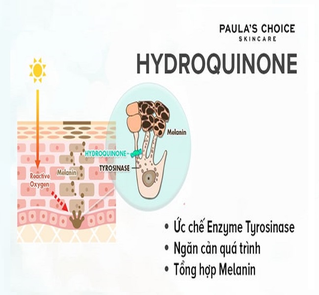 - Hydroquinone không tẩy trắng da, đó là lý do tại sao thuật ngữ “chất tẩy trắng” để chỉ hydroquinone là sai, vì nó không thể loại bỏ các hạt sắc tố trong tế bào da, nhưng nó có thể hạn chế quả trình sản sinh melanin.