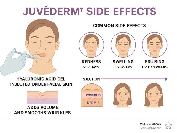 Các tác dụng phụ juvederm thường là nhẹ và thoáng qua. Chúng xuất hiện trong vài ngày đầu sau tiêm. Dưới đây là các phản ứng tại chỗ phổ biến.