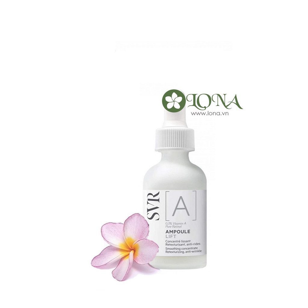 Serum Svr Ampoule Lift là một sản phẩm thuộc dòng SVR do Lona được Mỹ phẩm SVR Việt Nam ủy quyền phân phối chính thức. Serum SVR [A] Ampoule Lift Smoothing Concentrate làm giảm thiểu các nếp nhăn, chống lão hóa da,làm se khít lỗ chân lông. Retinol SVR giúp tái tạo da, tăng cường biểu bì làm da săn chắc.SVR a Retinol là sản phẩm được kiểm soát da liễu và 50% trên da nhạy cảm.