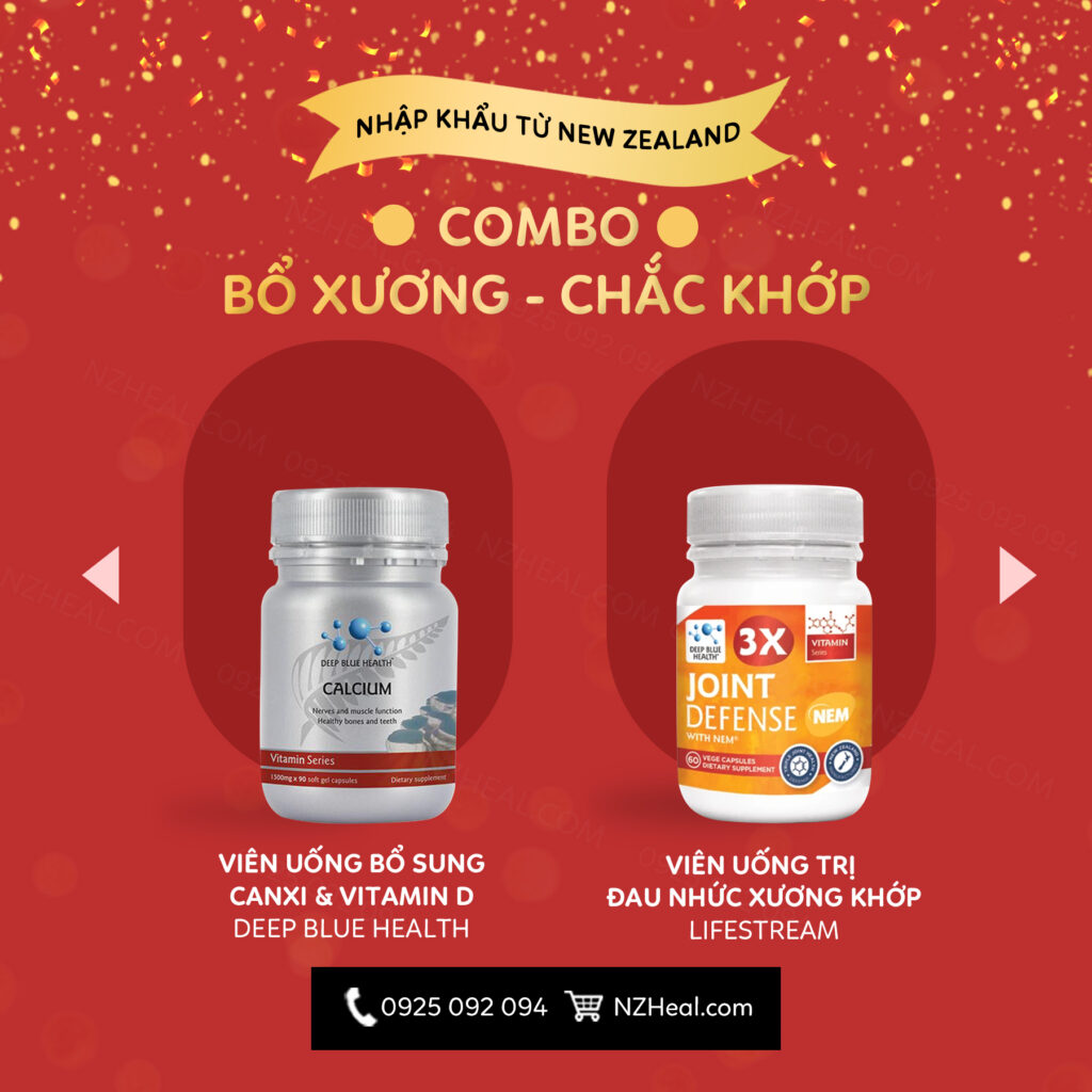 Viên uống bổ khớp Deep Blue Health 3x Joint Defense with NEM® được điều chế với hoạt chất chính NEM, giúp bảo vệ xương khớp khỏi đau khớp liên quan đến tập thể dục và tổn thương sụn. Phòng thủ là chìa khóa cho sức khỏe chung lâu dài đối với những người tham gia các hoạt động tập thể dục, người cao tuổi, loãng xương, viêm xương khớp,…