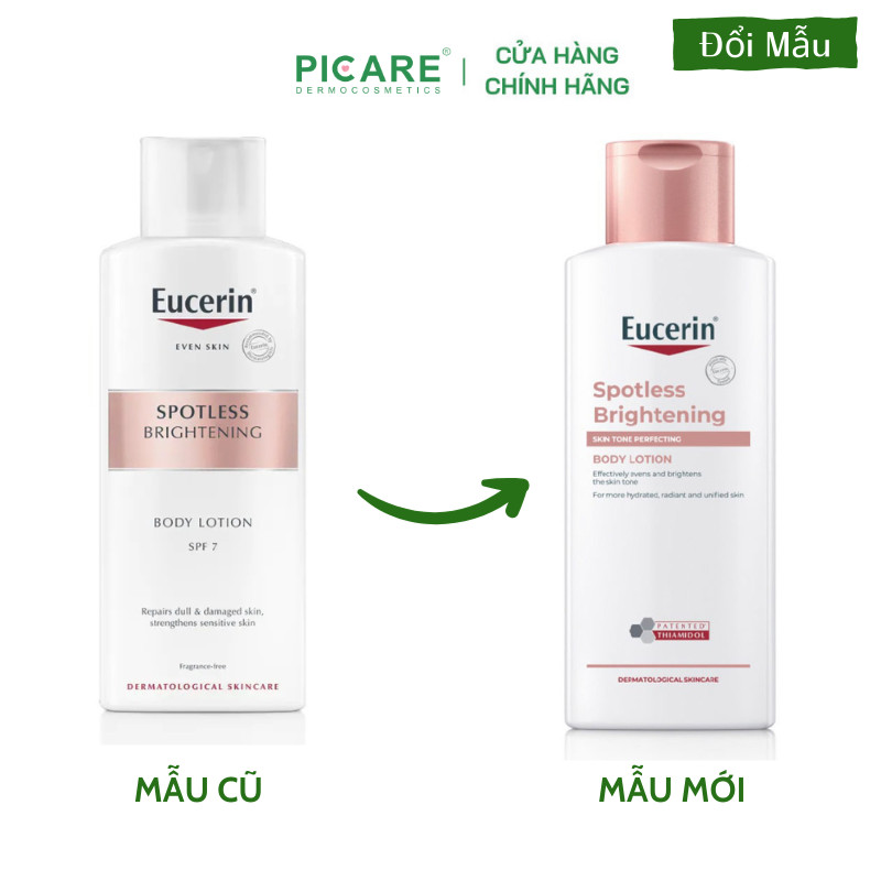 – Sản phẩm Eucerin Kem Dưỡng Thể Trắng Da UltraWhite+ Spotless Body Lotion SPF7 250ml tại Picare với thành phần dịu nhẹ phù hợp cho cả những làn da nhạy cảm, giúp cung cấp độ ẩm và làm sáng da từ sâu bên trong. Kết hợp với chỉ số chống nắng SPF 7 giúp bảo vệ làn da trước những tổn thương do ánh nắng mặt trời gây ra.