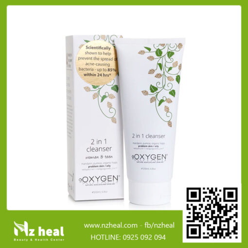 OXYGEN 2 in 1 Cleanser được bào chế dành cho da bị mụn, da nhạy cảm hoặc da dầu dễ bị mụn, nhẹ nhàng tẩy tế bào chết và loại bỏ bụi bẩn, dầu và tạp chất để mang lại làn da sạch sẽ và tràn đầy sức sống. Rửa mặt với OXYGEN 2 in 1 Cleanser giúp loại bỏ bụi bẩn hàng ngày, dầu thừa, mồ hôi và lớp trang điểm trên da, đồng thời làm sạch các tế bào da chết cũng như giúp loại bỏ các tắc nghẽn từ lỗ chân lông.