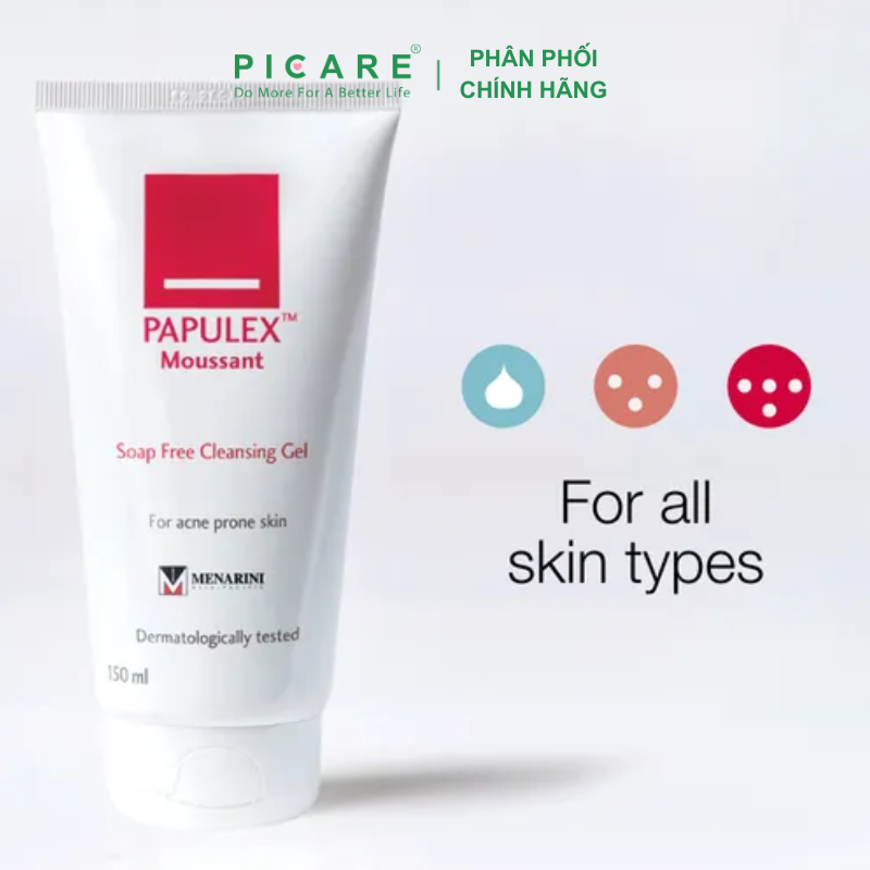 Sữa rửa mặt Papulex Moussant Soap Free Cleansing Gel giúp bụi bẩn được làm sạch dịu nhẹ với công thức không chứa xà phòng, không gây kích ứng da. Sữa rửa mặt Papulex Moussant Soap Free Cleansing Gel giúp làm giảm sự xuất hiện của mụn trứng cá, duy trì cảm giác tươi mát và dễ chịu cho da. Sản phẩm cung cấp nhiều chất dưỡng ẩm, làm mềm da, dịu nhẹ và lý tưởng để chăm sóc mụn trứng cá hàng ngày đối với làn da nhạy cảm. – Picare là nhà phân phối chính hãng của Papulex tại Việt Nam.