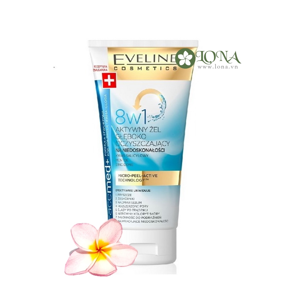 Gel rửa mặt Eveline Active Cleansing Gel + Scrub + Mask giúp loại bỏ 8 vấn đề trên da. Sản phẩm còn giúp loại bỏ da chết và làm sáng da, mang đến làn da mịn màng.