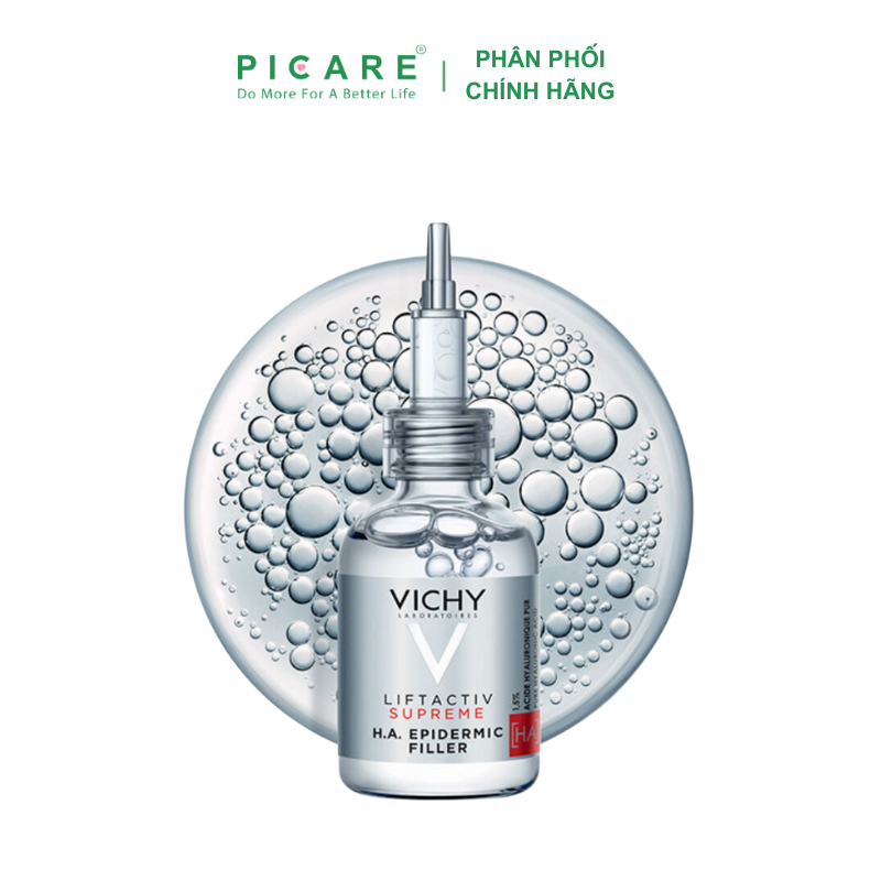 Tinh Chất H.A Hỗ Trợ Giảm Nếp Nhăn, Giúp Da Trông Căng Bóng Và Tăng Cường Độ Ẩm Cho Da Vichy LiftActiv Suppreme H.A Epidermic Filler 30ml, với Axit Hyaluronic chuyên sâu làm giảm các dấu hiệu của nếp nhăn và đường nhăn trên da. Công thức với các thành phần hoạt tính như Vitamin CG và B5, cung cấp độ ẩm cho da và giúp làm mờ sự xuất hiện của các nếp nhăn với tác dụng lấp đầy. Thích hợp cho da nhạy cảm. Không gây dị ứng. Không gây mụn.– Picare là nhà phân phối chính hãng của VICHY tại Việt Nam.