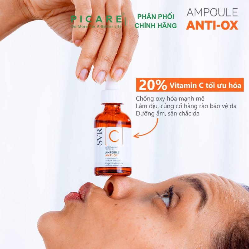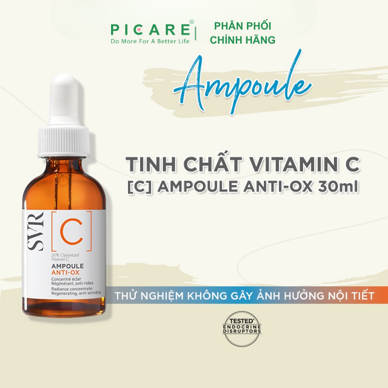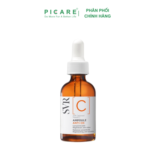 Tinh Chất Làm Sáng Da SVR [C] Ampoule Anti-Ox 30ml phù hợp cho làn da xỉn màu, mệt mỏi, da không đều màu, nếp nhăn và nếp nhăn. 20% Vitamin C tối ưu cho làn da rạng rỡ! Vitamin C được tối ưu này sẽ ngay lập tức sạc lại làn da để có một làn da rạng rỡ và giảm các dấu hiệu mệt mỏi. Giúp làn da trông săn chắc, sáng và đều màu hơn!– Picare là nhà phân phối chính hãng của SVR tại Việt Nam.