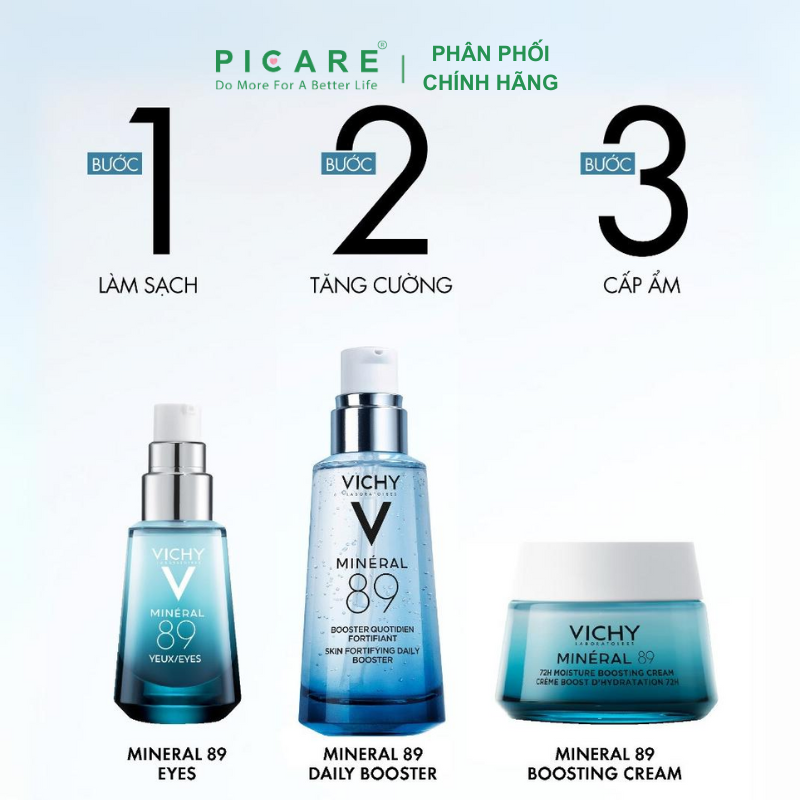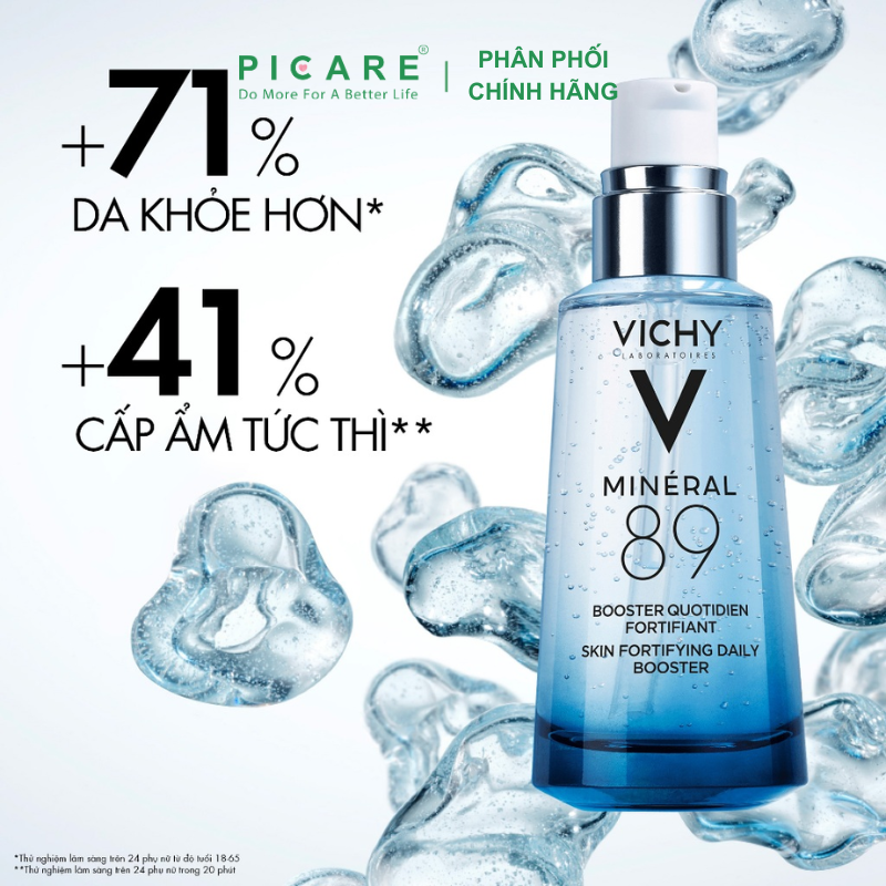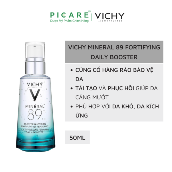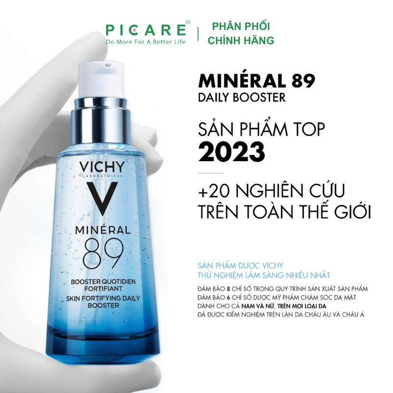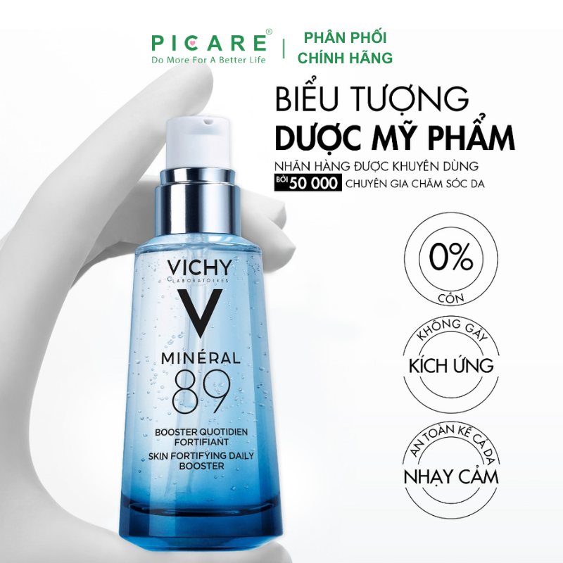 Với công thức gồm 89% nước khoáng vichy cô đặc phối hợp với Hyaluronic Acid giúp phục hồi & tái tạo hàng rào bảo vệ da; đồng thời bảo vệ da khỏi các tác nhân có hại như ô nhiễm, stress, …Dưỡng chất Vichy Mineral 89 an toàn hơn, ít gây kích ứng, dịu nhẹ cho làn da khi sử dụng, đặc biệt là những làn da nhạy cảm. – Picare là nhà phân phối chính hãng của VICHY tại Việt Nam.