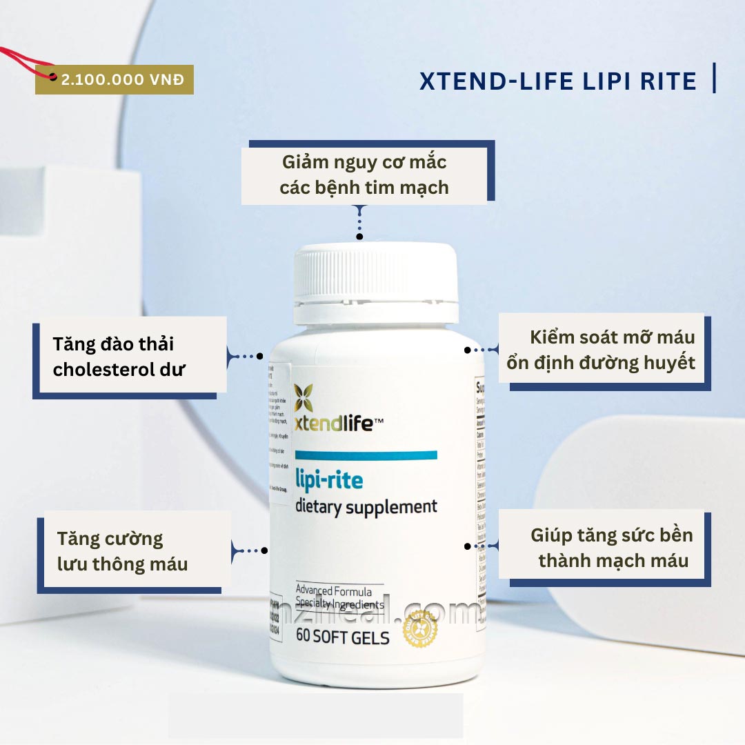 Xtend-Life Lipi Rite hỗ trợ chuyển hóa cholesterol trong gan, giảm cholesterol dư thừa, ngăn ngừa lắng đọng ở thành mạch. Đồng thời, Lipi Rite giúp tăng cường tuần hoàn máu, chống xơ vữa động mạch, phòng ngừa bệnh về tim mạch, đột quỵ.