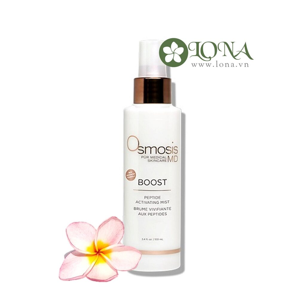Osmosis +MD’s Boost Peptide Activating Mist (trước đây là Clear Plus+ Activating Hydration Mist) cung cấp độ ẩm nhẹ giúp làn da của bạn mịn màng hơn, trẻ trung hơn. Loại xịt khoáng dành cho mặt này được pha trộn với sự kết hợp mạnh mẽ của các loại tinh dầu và trà xanh giúp điều trị các nếp nhăn, khô, mất nước và mẩn đỏ.