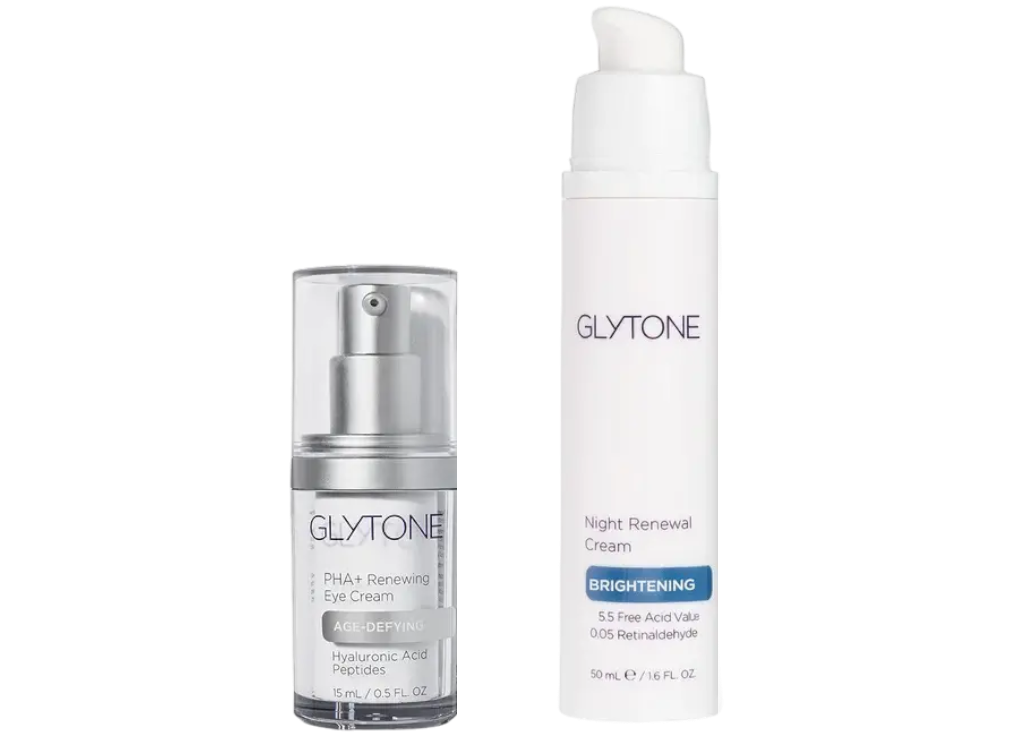 Age Defy PHA+ Eye Cream: Aqua (Water), Isodecyl Neopentanoate, Isononyl Isononanoate, Glycol Palmitate, Polysorbate 60, Glyceryl Stearate, Pentaerythrityl Tetraisostearate, Glycerin, Sodium Acrylate/Acryloyldimethyltaurate/Dimethylacrylamide Crosspolymer, Candelilla/Jojoba/Rice Bran Polyglyceryl-3 Esters, Lauryl Laurate, Lactobionic Acid, Polyglyceryl-6 Palmitate/Succinate, Isohexadecane, Caffeine, Propanediol, Silica, Cetearyl Alcohol, Caprylic/Capric Triglyceride, Xanthan Gum, 1,2-Hexanediol, Caprylyl Glycol, Sodium Stearoyl Lactylate, Potassium Sorbate, Sodium Gluconate, Bisabolol, Glycolic Acid, Acmella Oleracea Extract, Lactobacillus Ferment, Glyceryl Caprylate, Sodium Hyaluronate, Pentylene Glycol, Aloe Barbadensis Leaf Juice Powder, Hyaluronic Acid, Rosmarinus Officinalis (Rosemary) Leaf Extract, Palmitoyl Tetrapeptide-7, Chrysin, Citric Acid, Sodium Hydroxide, Sorbitan Isostearate. Night Renewal Cream: Key Ingredients: Glycolic Acid Additional Ingredients: Water, Caprylic/Capric Triglyceride, Mineral Oil, Glyceryl Stearate, PEG-100 Stearate, Squalane, Polyacrylate-13, Sodium Hydroxide, Polyisobutene, BHT, Butylparaben, Disodium EDTA, Phenoxyethanol, Polysorbate 20, Red 33, Sorbitan Isostearate.